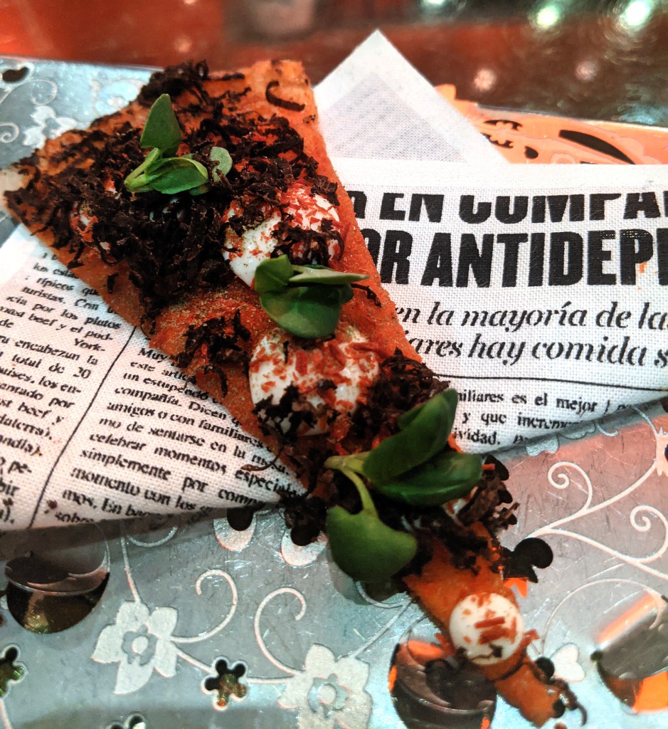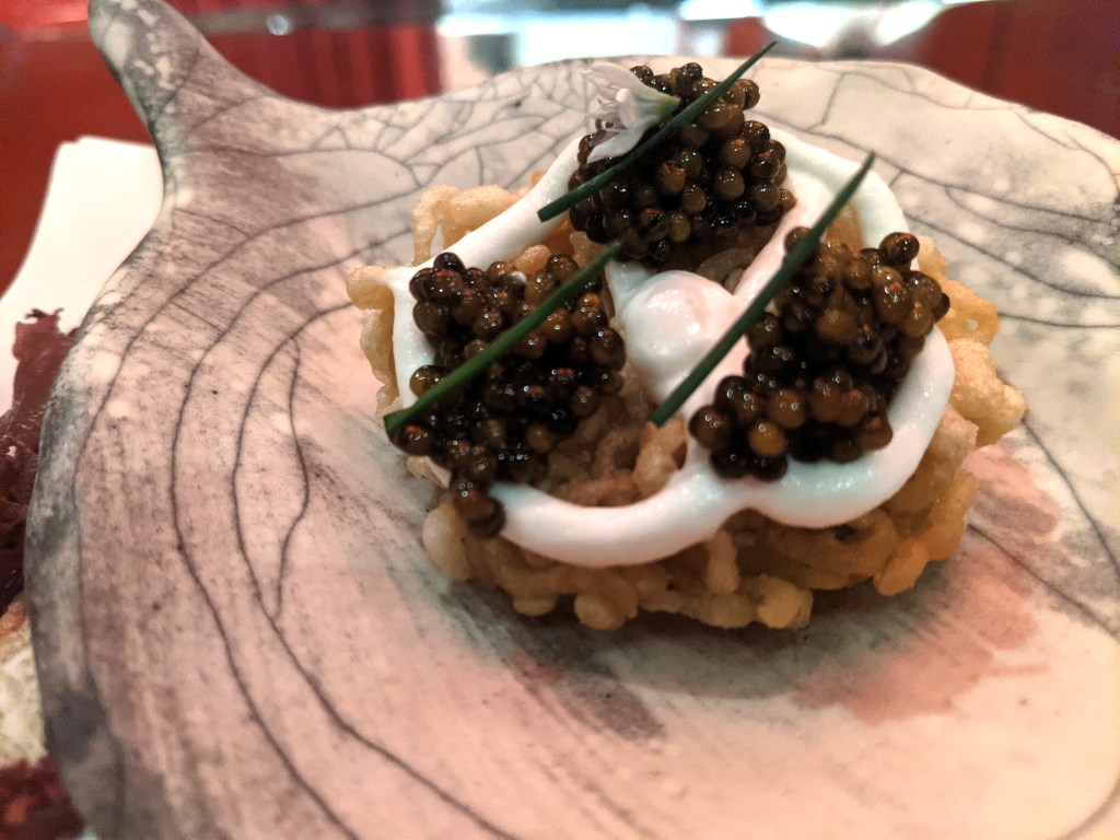 “Tortillita” – Crisp made from 12 oysters, Osetra caviar and crème fraîche.