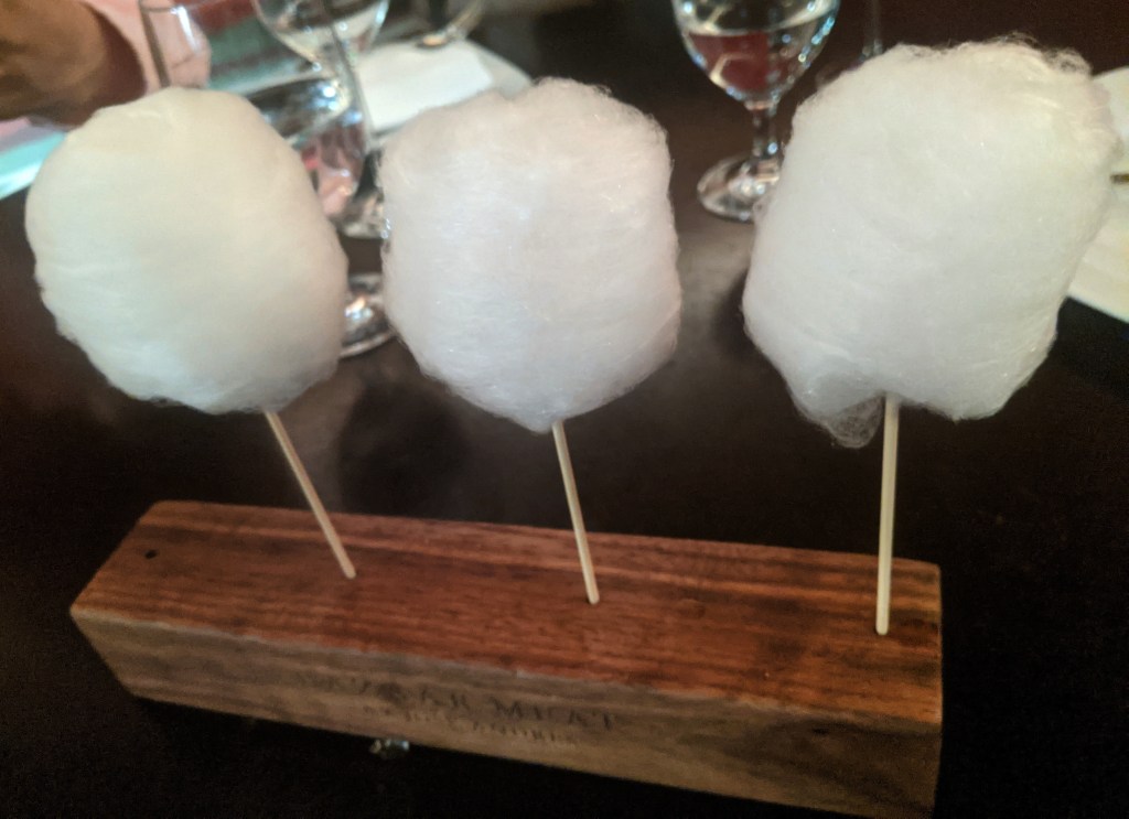 “Empanada” – Foie Gras and crushed corn nuts inside pressed cotton candy.
