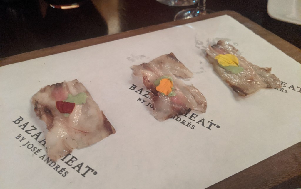 On Thursday, April 8th, as we were broken down in a Baptist parking lot in Fredericksburg, Texas, coming to grips with our Fools Roll failure, I texted Greasy Strangler star Sky Elobar and told him about our journey to Vegas, our team theme (Greasy Strangler) and invited him to join us at José Andres’ Bazaar meat two days later. 1 minute later, I received the text, “I’m in.” And he was. We met him at the Sahara to begin our culinary adventure.