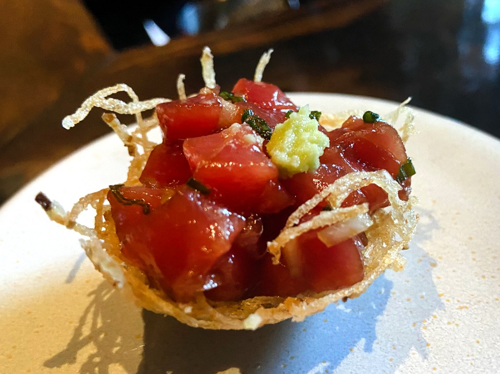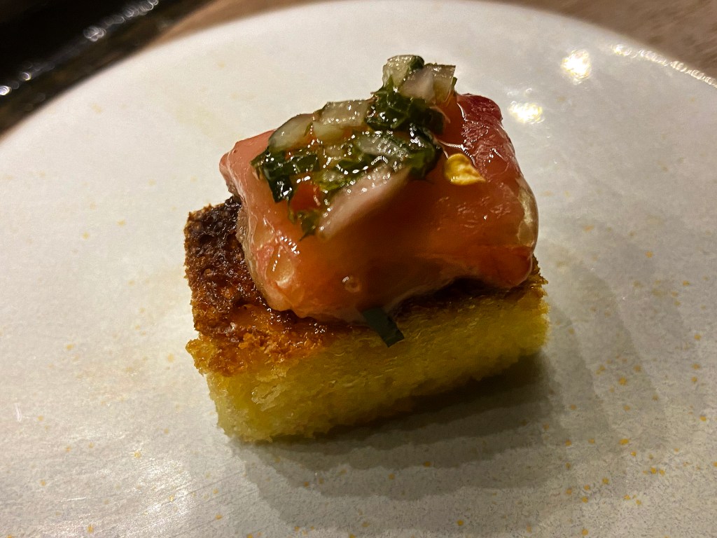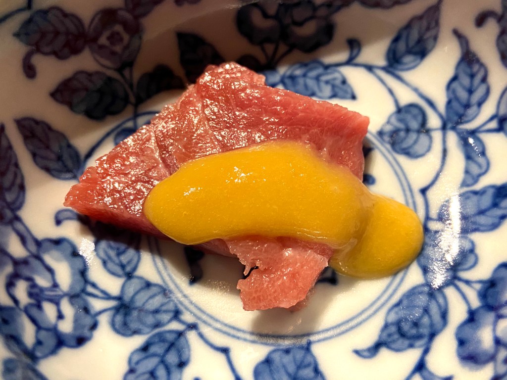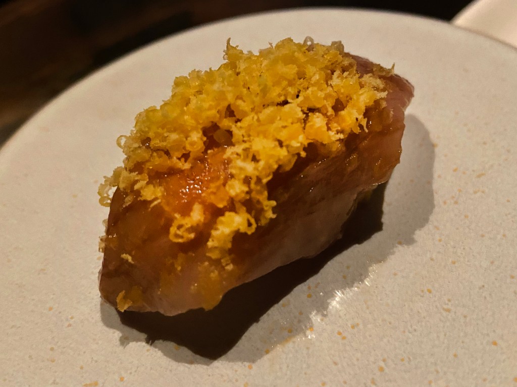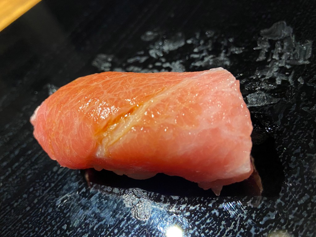 “The Burnt End.” A little taster sample of a cut of the tip of the chutoro