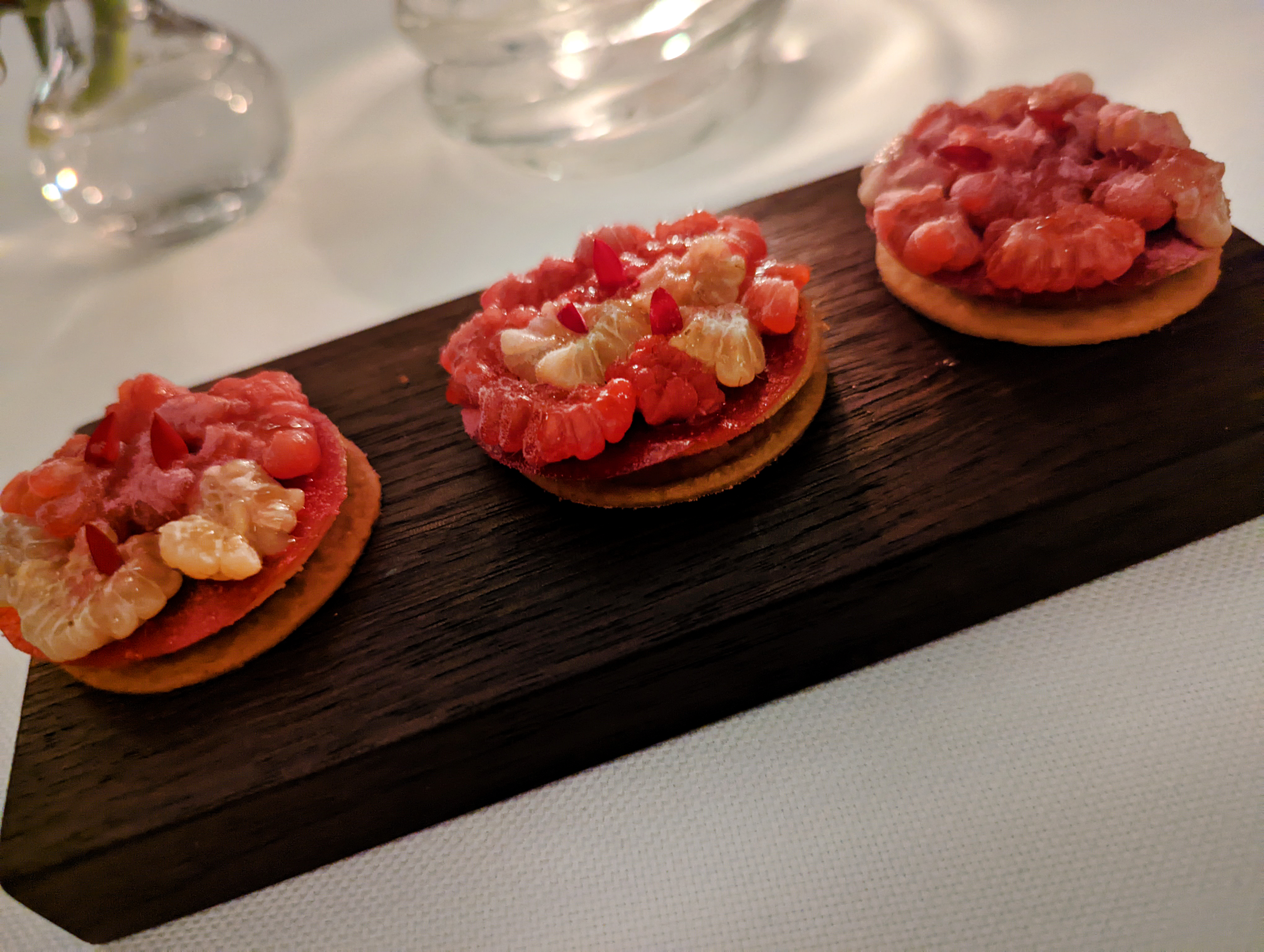IMG_20181207_180635Walnut and berry ceviche with caramelized baby pine cones.